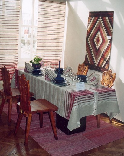 A bemutatón vászon és gyapjú szõttesek, hímzések láthatók. A kiállításon megtalálható a hagyományos ágynemû mellett a ma is használható hímzett szövött garnitúra, a különbözõ tájegységek hímzéseit bemutató ágytakaró, falvédõ, párnák stb. A kiállítás üzenete, hasonló az elõzõekhez, nevezetesen az hogy alternatívát mutassunk a tucat termékekkel szemben, mert állítjuk, hogy a népmûvészeti alkotások a mûvészi értékükkel, funkciójuk megtartása mellett lehetnek a XXI. Század emberének használati tárgya is. - Egyházi textíliák